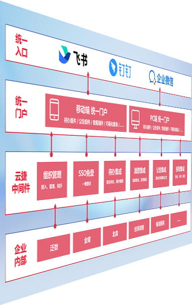 对协作平台提供支持服务,,,,支持企业应用与协作平台对接,,,,包含组织同步、、、、消息集成、、、、待办集成等。。。。支持目前主流的协作平台:钉钉、、、企微和飞书。。