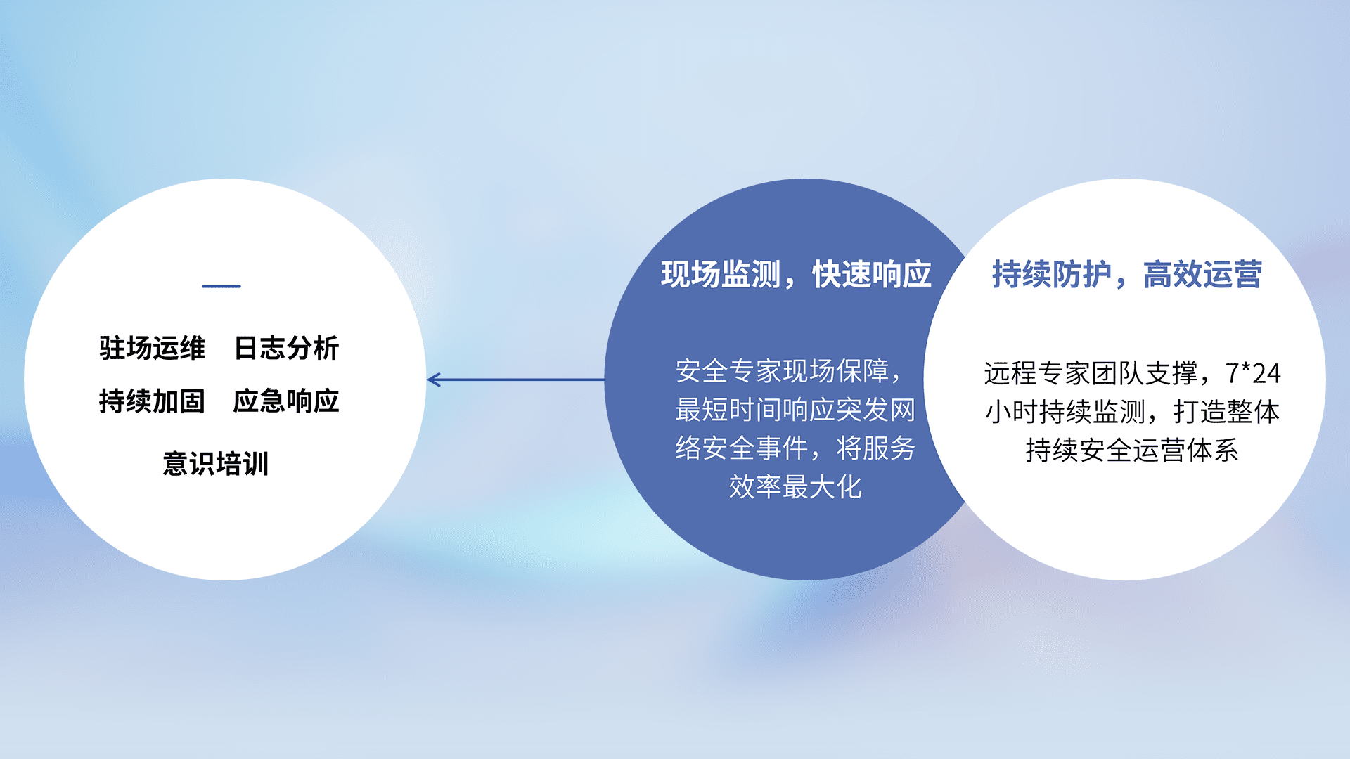 7X24小时持续监测安全事件,保持安全策略有效性,降低资产脆弱性风险,,,精准拦截黑客攻击,,减少被黑客利用的机会,,,,第一时间遏制,,,降低损失。。